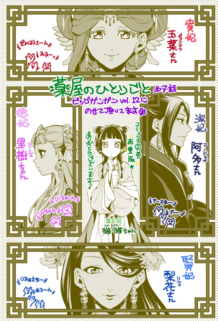 También estaba preocupada por la imagen de Jinshi, que se había topado con Maomao, un personaje como una doncella celestial preocupado por una niña lamentable.