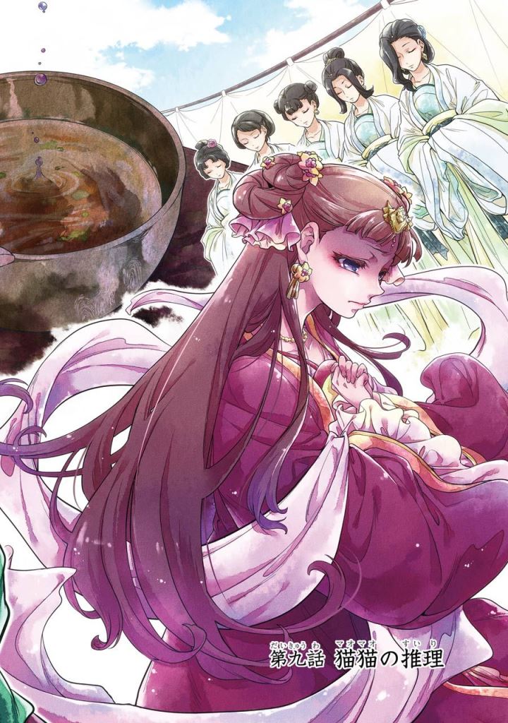 Cuando llegó el mediodía, Maomao alternó con Honnyan para esperar detrás de la Consorte Gyokuyou.
